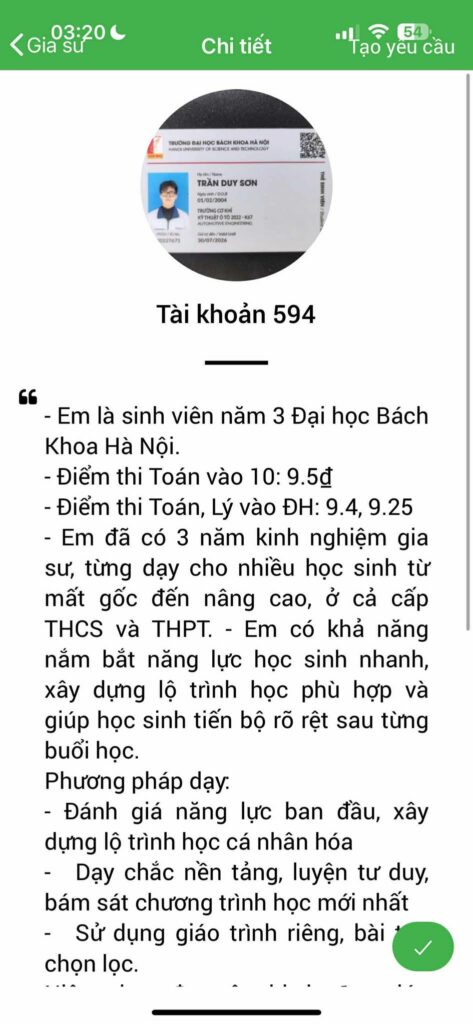 – Daykemtainha.vn có các giảng viên đại học uy tín: Một số gia sư Toán tại Daykemtainha.vn là giảng viên đến từ các trường đại học sư phạm, kỹ thuật, kinh tế. Họ không chỉ giỏi chuyên môn mà còn có khả năng định hướng học tập, giúp học sinh hiểu rõ Toán học gắn liền với ngành nghề tương lai.