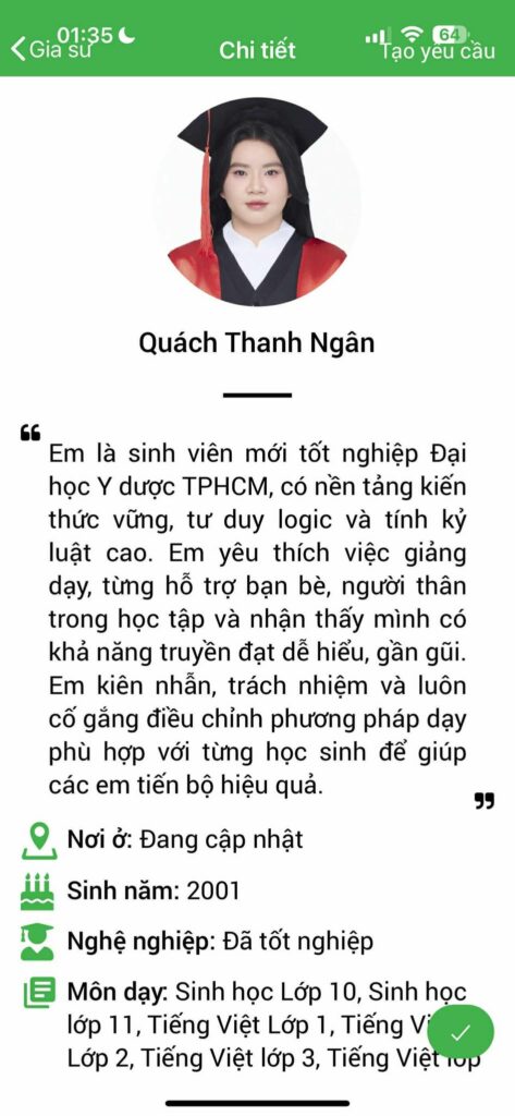 Đội ngũ gia sư sinh viên tại Daykemtainha.vn được tuyển chọn từ các em là sinh viên có học lực KHÁ, GIỎI của các trường TOP 1 hiện nay như: ĐH Khoa học tự nhiên, ĐH Bách Khoa, ĐH Sư phạm, … Đây là các sinh viên học chuyên, có thành tích nổi bật. Sau được chọn các em đã được Daykemtainha.vn đào tạo về kỹ năng sư phạm cũng như các kỹ năng mềm cần có khác để phục vụ tốt nhất cho công tác giảng dạy của mình.