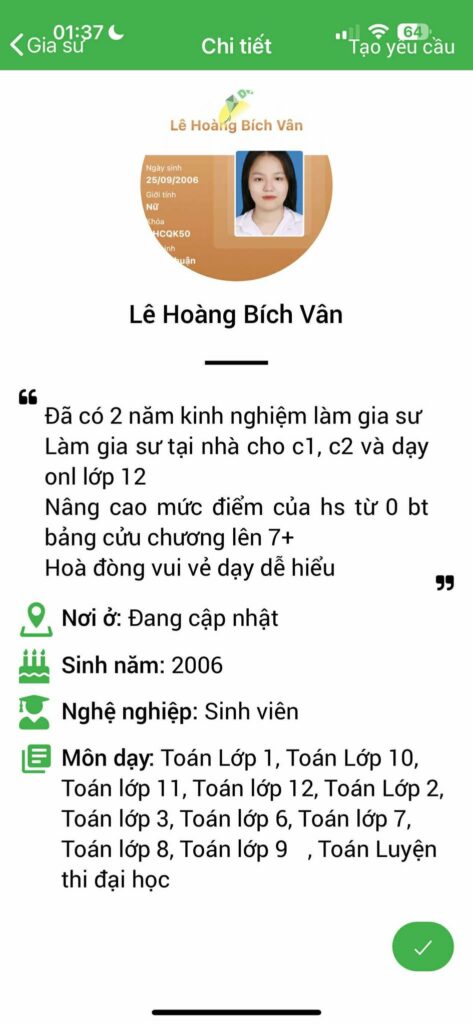 XEM PROFILE DANH SÁCH GIA SƯ DẠY MÔN TOÁN TẠI ĐÂY – XEM THÊM