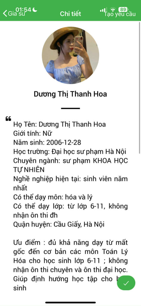 Dù là gia sư là sinh viên hay gia sư là giáo viên thì tất cả đội ngũ gia sư tại Daykemtainha.vn đều là những người có kinh nghiệm giảng dạy tốt, tinh thần trách nhiệm cao và đặc biết là có lý lịch rõ ràng, giấy tờ đầy đủ.