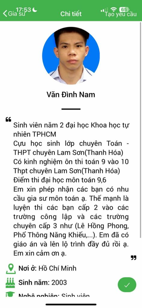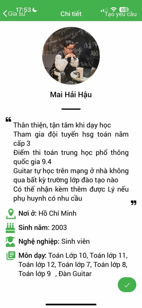 XEM PROFILE DANH SÁCH GIA SƯ DẠY MÔN TOÁN TẠI ĐÂY – XEM THÊM